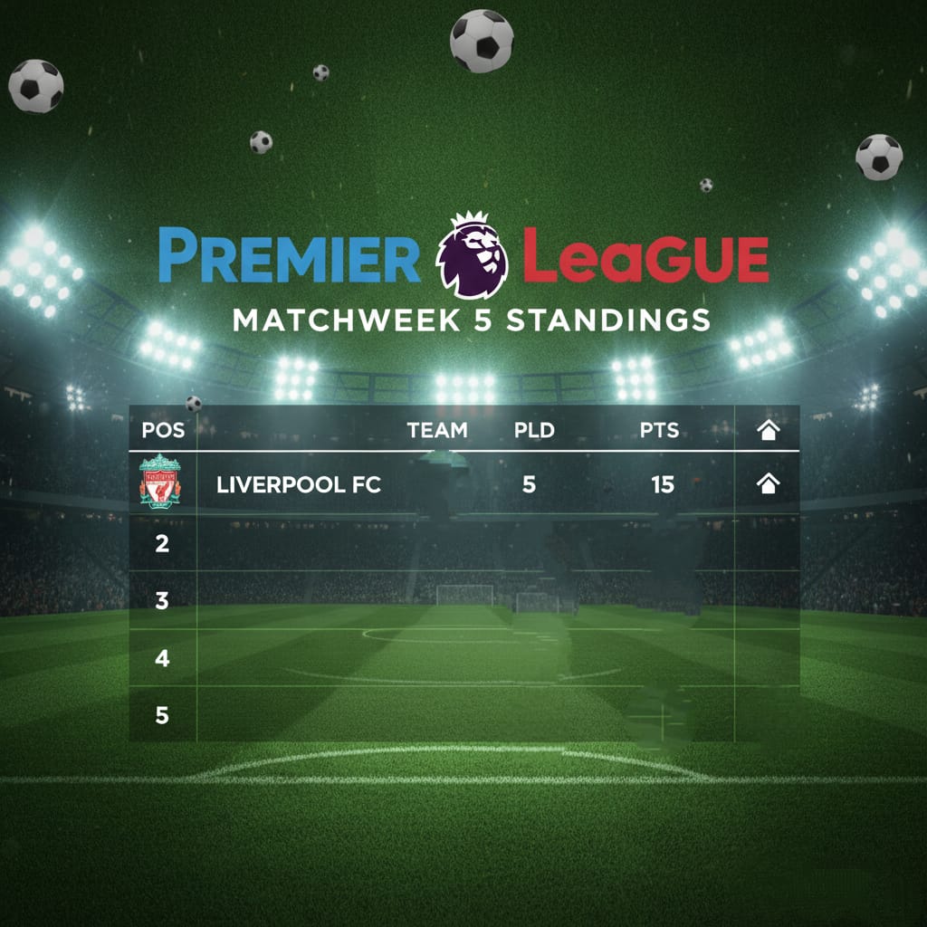 Berikut ini Klasemen sementara Liga Inggris sampai pekan ke-5: